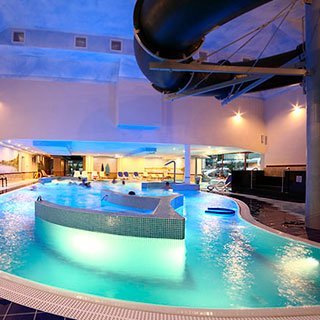 Аквапарк отеля разделён на 2 зоны. Крытые бассейны – рекреационный с подводной музыкой, гидромассажные лавочки, гейзеры, «водный грибок», «бурная река», 8 джакузи.