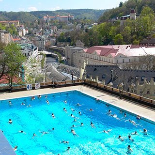 Radium Palace – четырёхзвёздочный спа-отель для некурящих. Большой спа-салон с крытым плавательным бассейном, сауной, 5 ресторанов. Полноценное лечение при отеле. Русскоговорящий персонал.